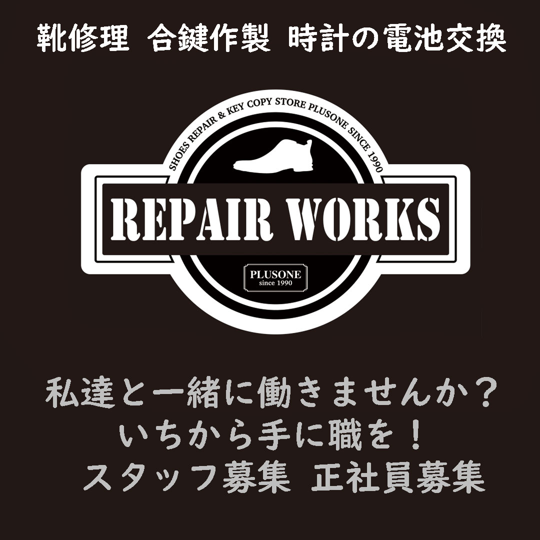 靴修理 プラスワン 私達と一緒に働きませんか? 1から手に職を! ゼロからプロに 求人 スタッフ 従業員 正社員募集